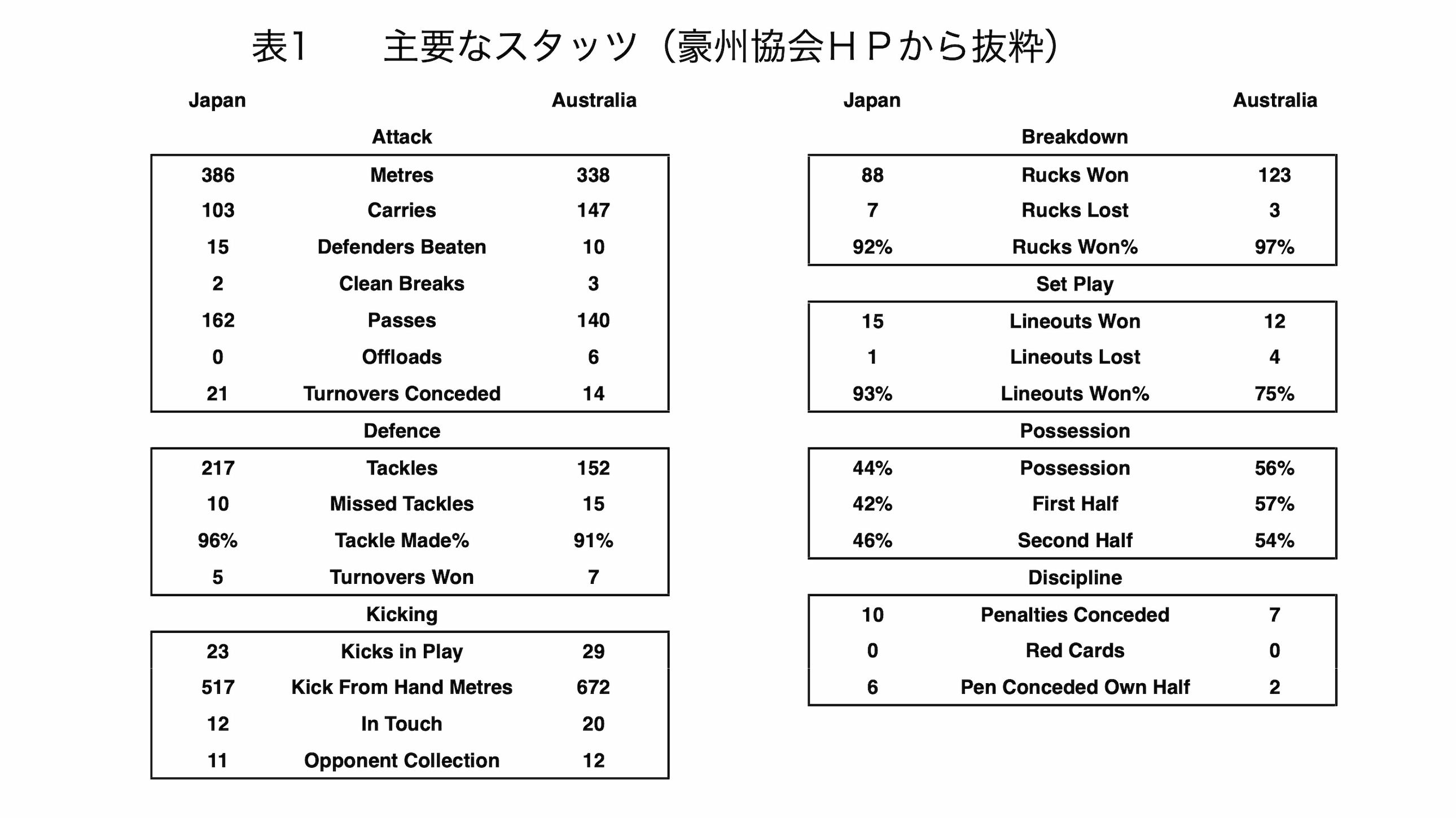 『表1』は豪州協会に掲載されていたこの試合のスタッツの抜粋である。