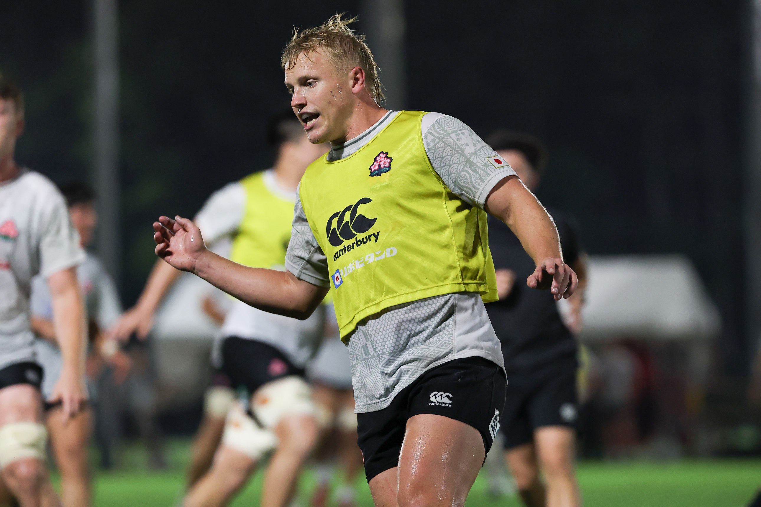 いまのジャパンには今度の対戦国の出身者が6名並ぶ(南アフリカ生まれのディラン・ライリーを含む)。そのひとりがサム・グリーン。今回の一戦では23番のジャージーを着る。
