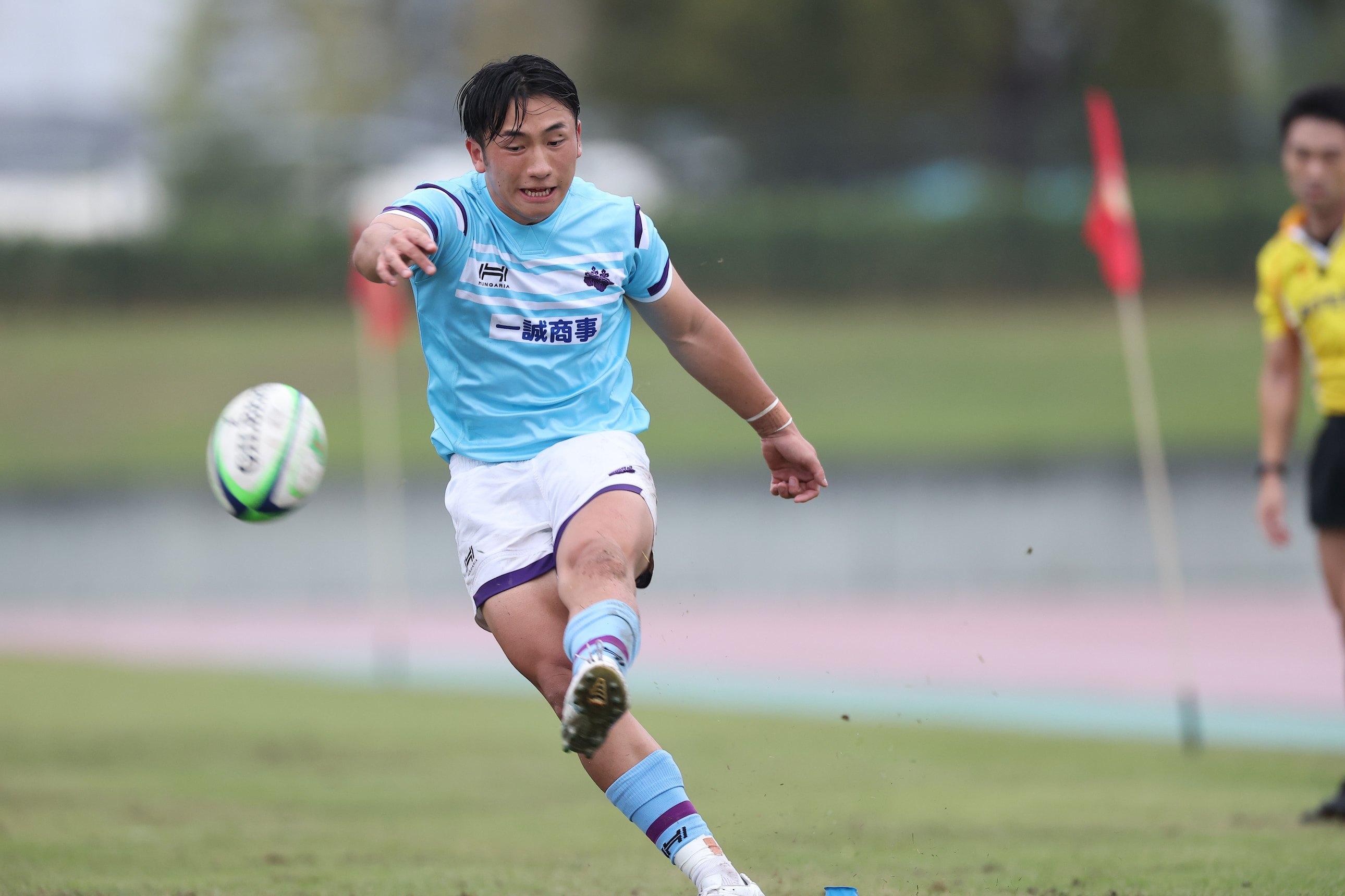 筑波大は32分、相手ドロップアウト後のキックレシーブから攻めた。ハイパントを蹴って再獲得後、ラックからPR湯浅大心がピック・ゴー。クイックな球出しからCTB東島和哉、WTB内田慎之甫とボールは渡り、内田が好ステップでディフェンダーをズラす。