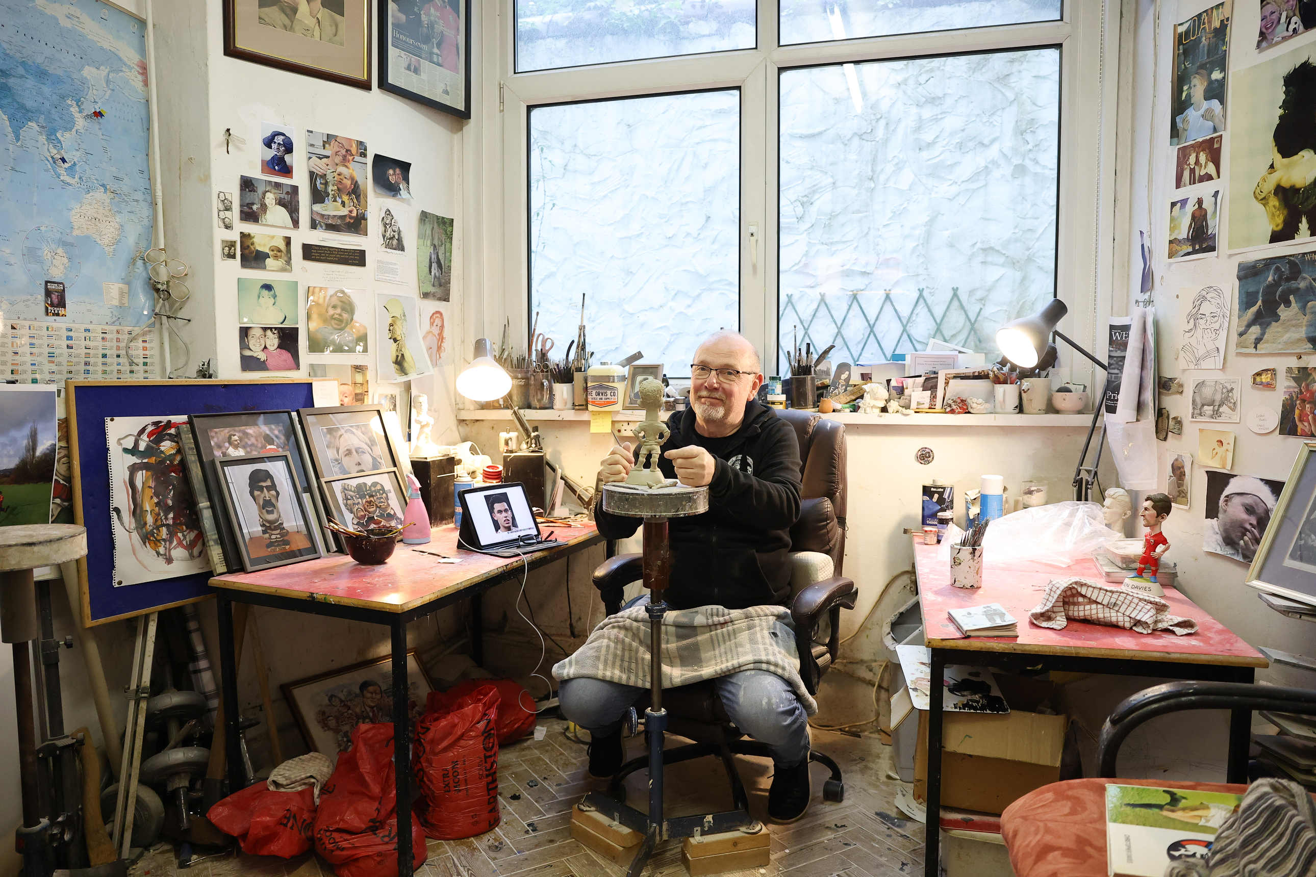 手作業で人形を作るリチャード・ヒューズさんと話した。