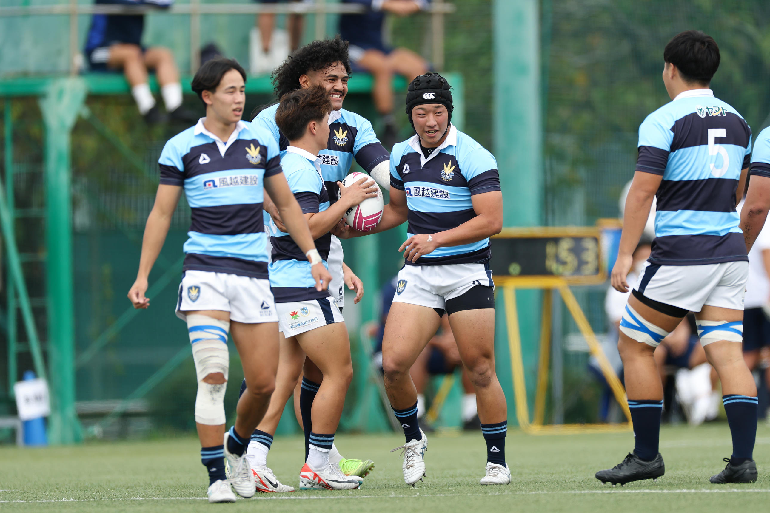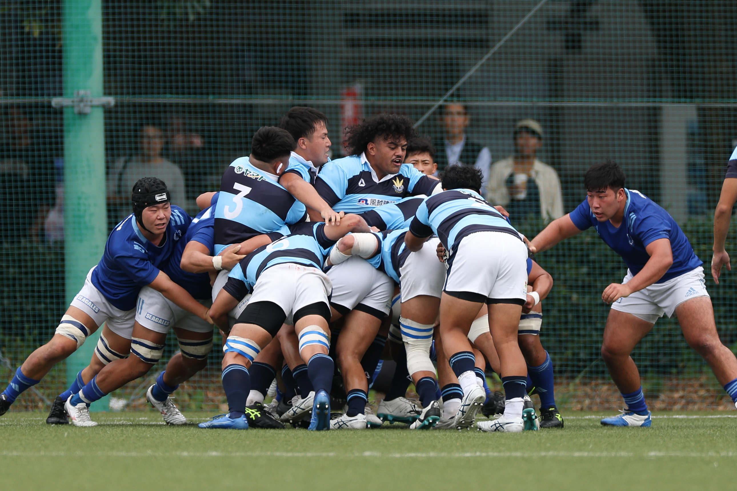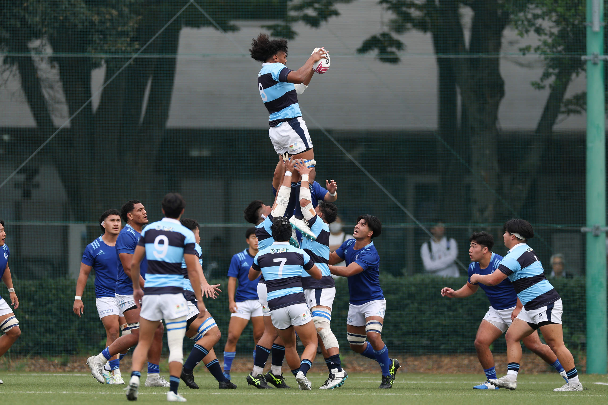 再三訪れたピンチは、2年の庄司晴太、3年の大島昌之の両フランカー、4年センターの安藤悠樹の好タックルでしのぎ、終盤に加点した。多彩なスキルとコンビネーションがさく裂した。