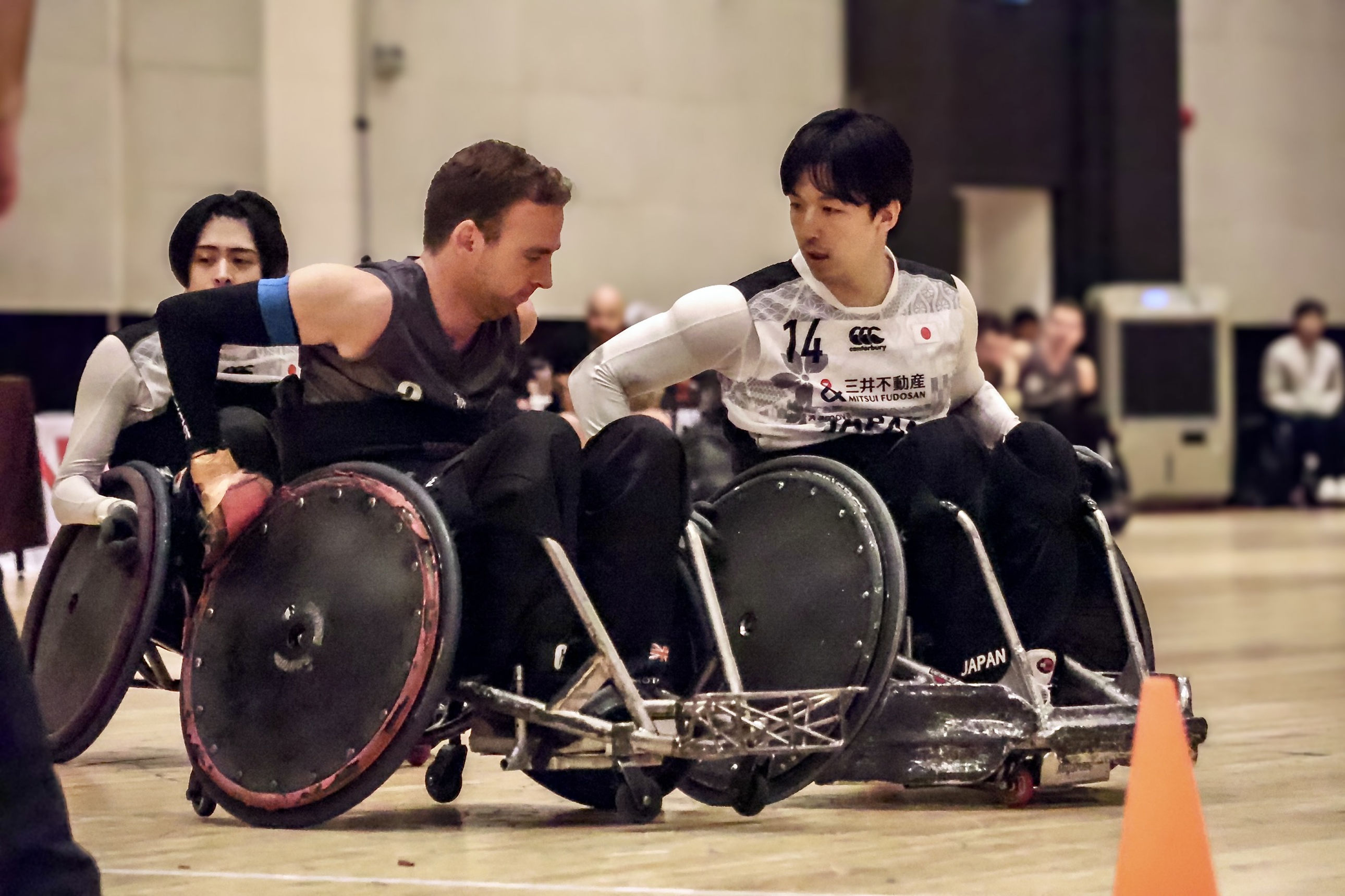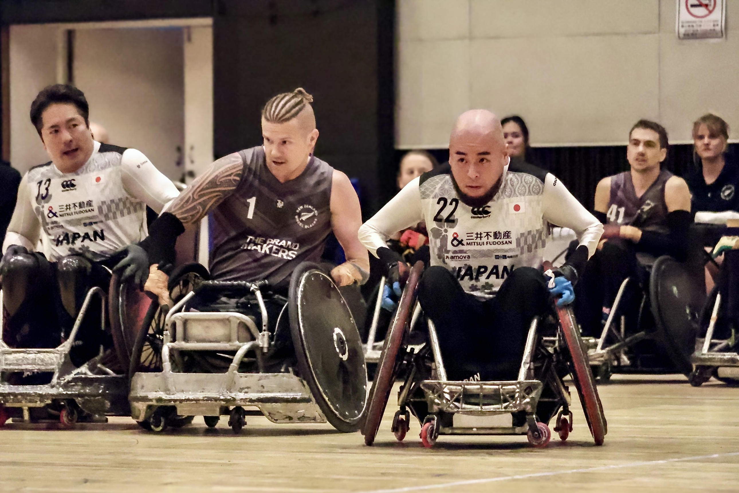 「ホイール・ブラックス(Wheel Blacks)」の愛称をもつ車いすラグビーニュージーランド代表によるハカで始まった試合は、手に汗握る攻防戦となった。