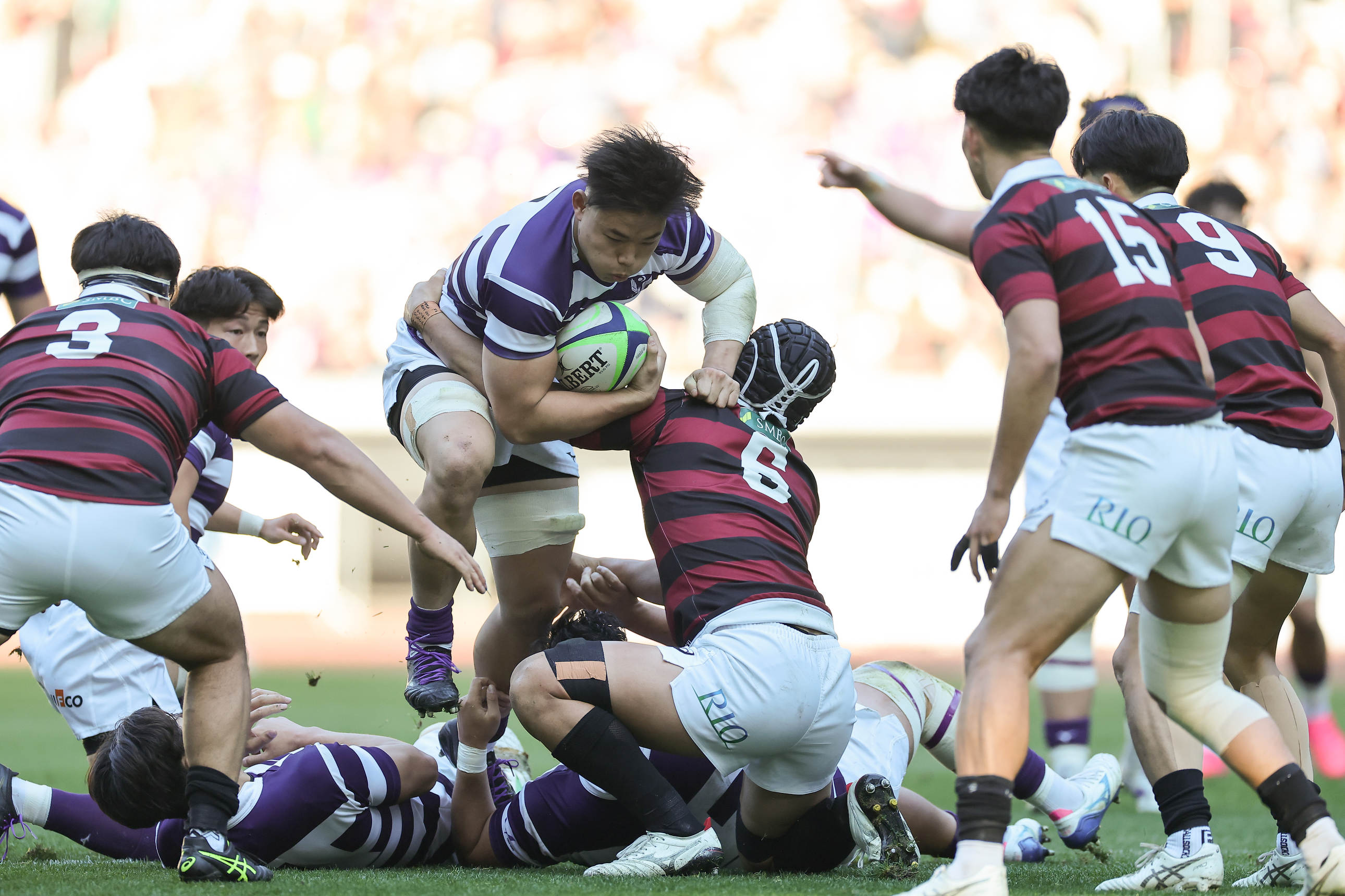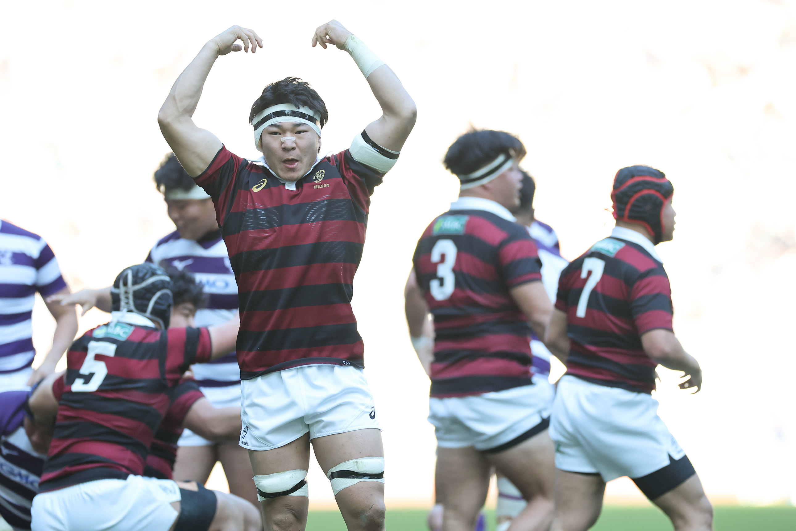 早大は前半18分にエースのFB矢崎由高が先制トライを挙げ、明大は3トライのうち2トライをFWでゴール前に迫り、背番号6の最上太尊(もがみ・たいそん)がボールをトライラインの向こう側に置いた。