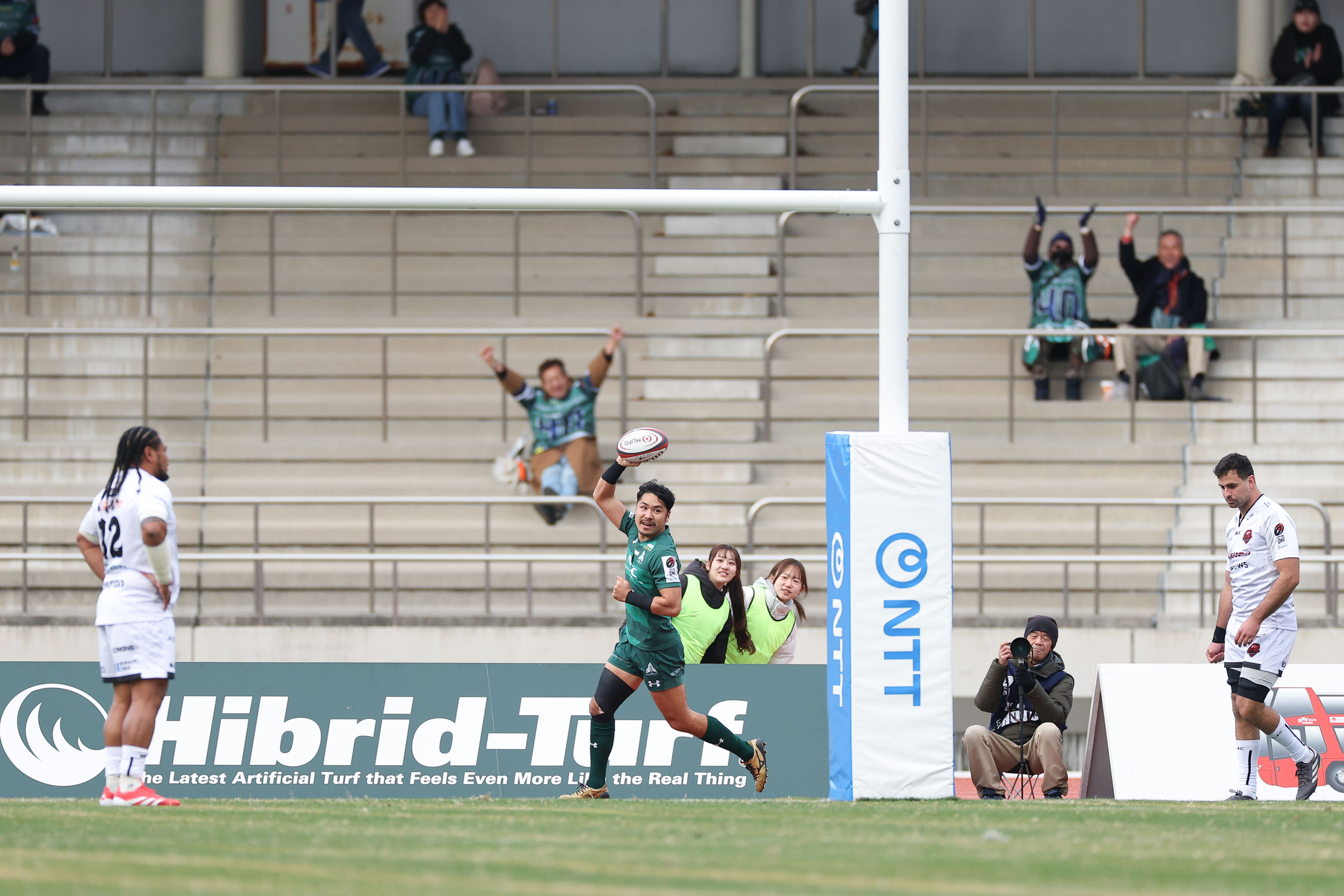 ディビジョン2のNECグリーンロケッツ東葛×レッドハリケーンズ大阪(柏の葉公園総合競技場)で、グリーンロケッツのWTB後藤輝也がこの試合のファーストスコアラーとなった。