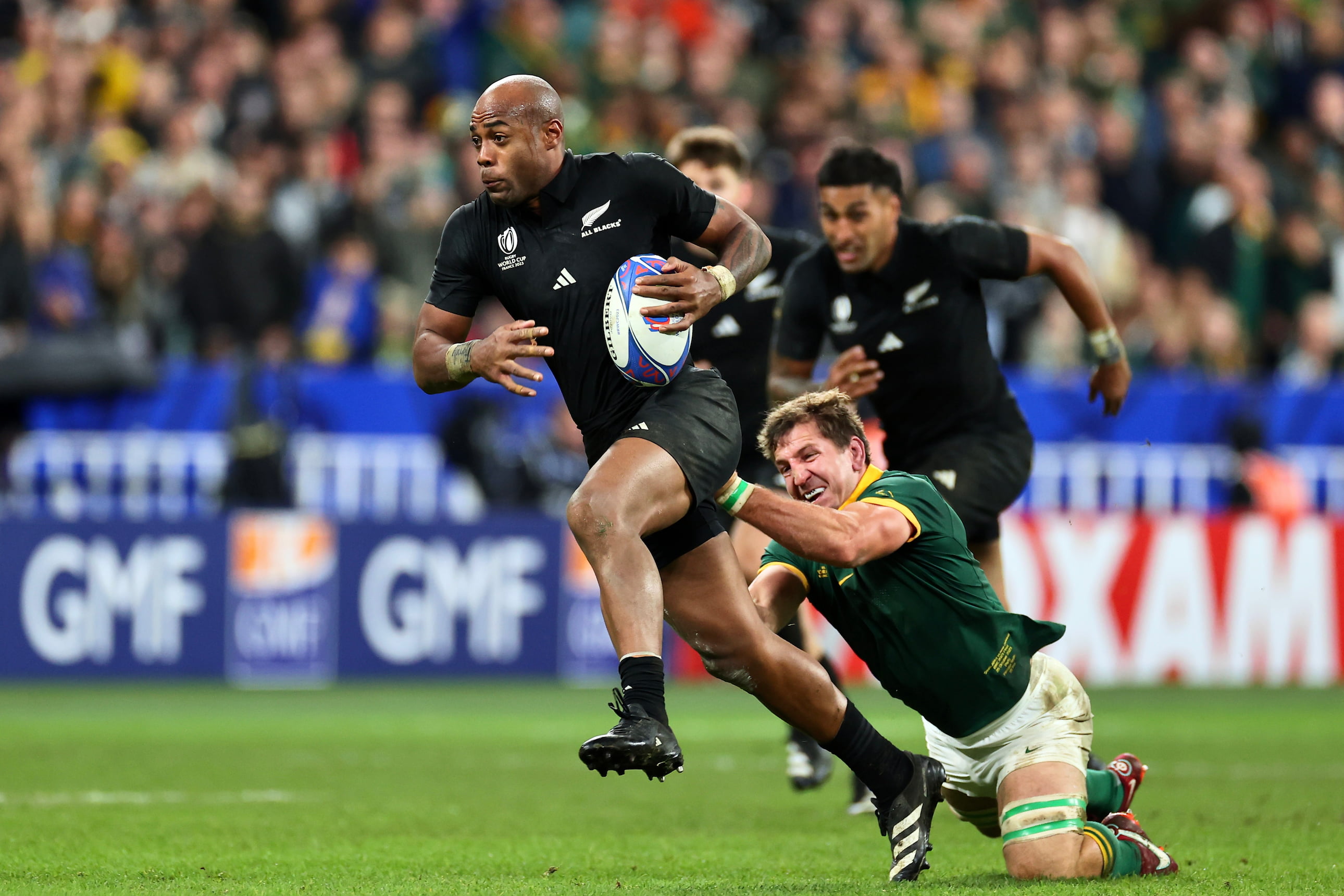 後半7分には自陣中盤右でボールをもらうや、タックラーの衝撃をいなすようなコンタクトをして身体を回し、倒れる瞬間に相手を下敷きにしてさらに前進した。