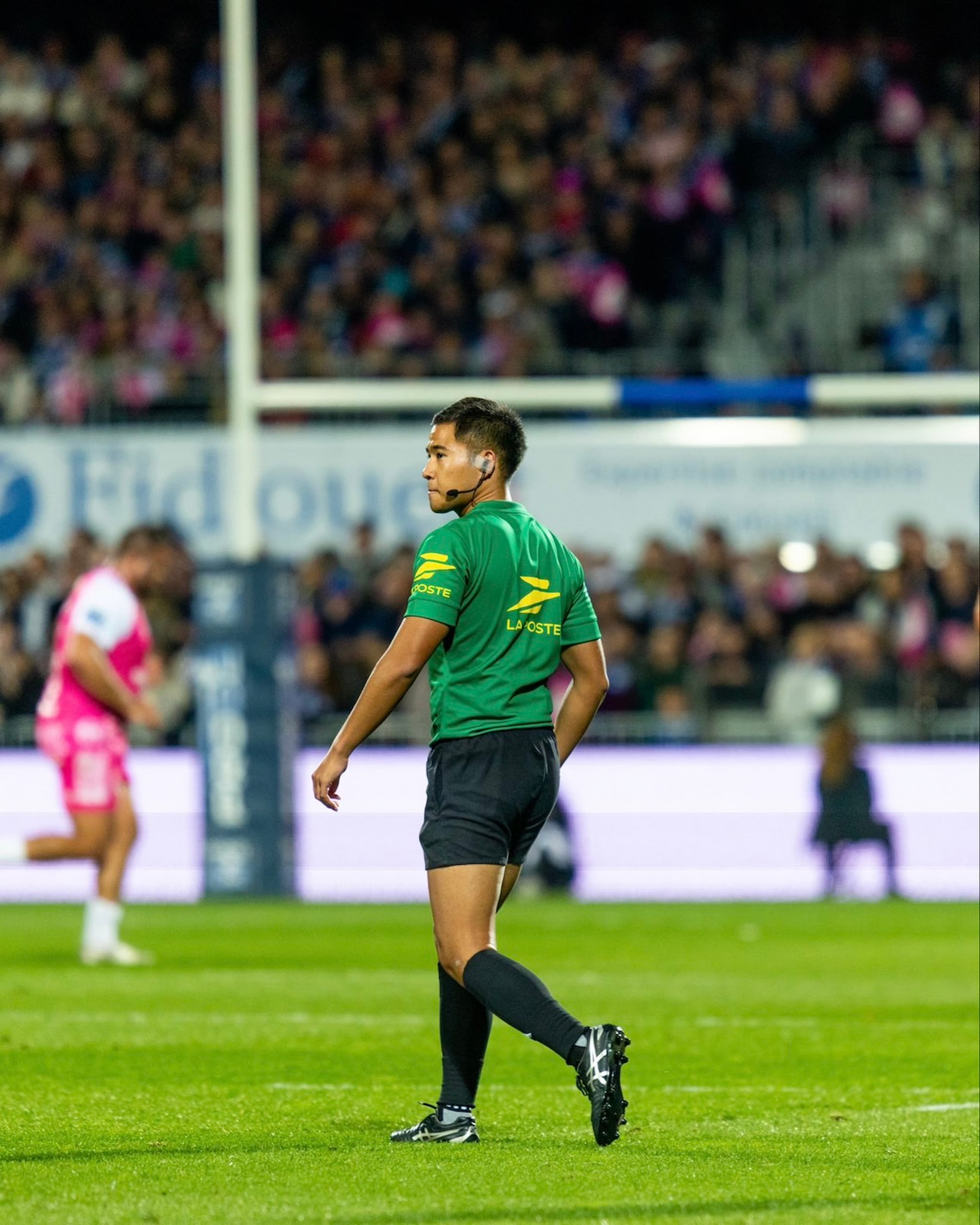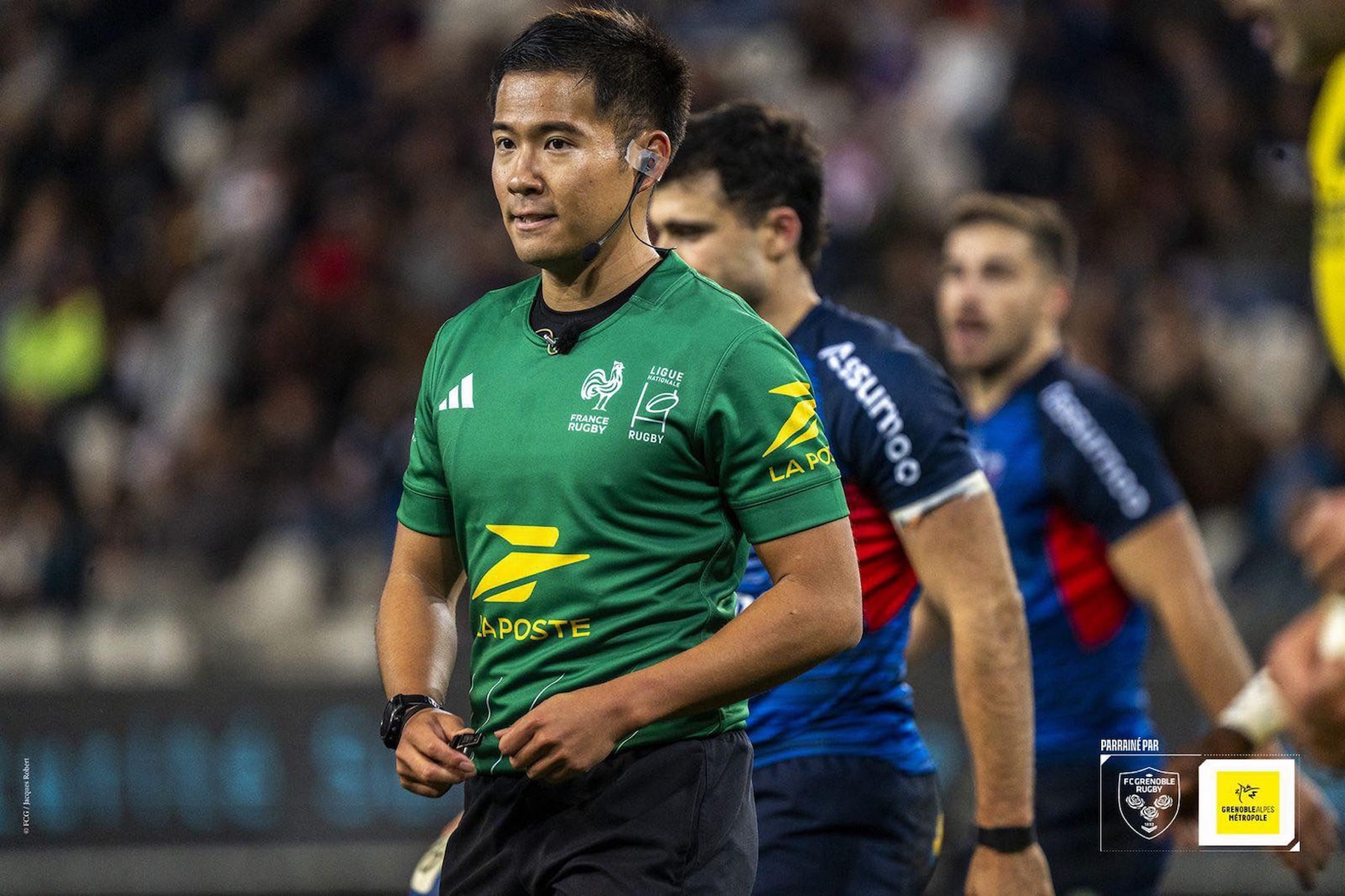 フランス協会とのレフリー交流事業により、古瀬健樹(かつき)レフリー(23歳)が世界最高峰のリーグに挑戦した。トップ14のトゥールーズ×ボルドー(現地時間10月12日)でアシスタントレフリーを務め、続いてプロD2ではヴァンヌ×オヨナ(10月16日)とグルノーブル×カルカッソンヌ(10月24日)で主審を務め、現地で高評価を得た。