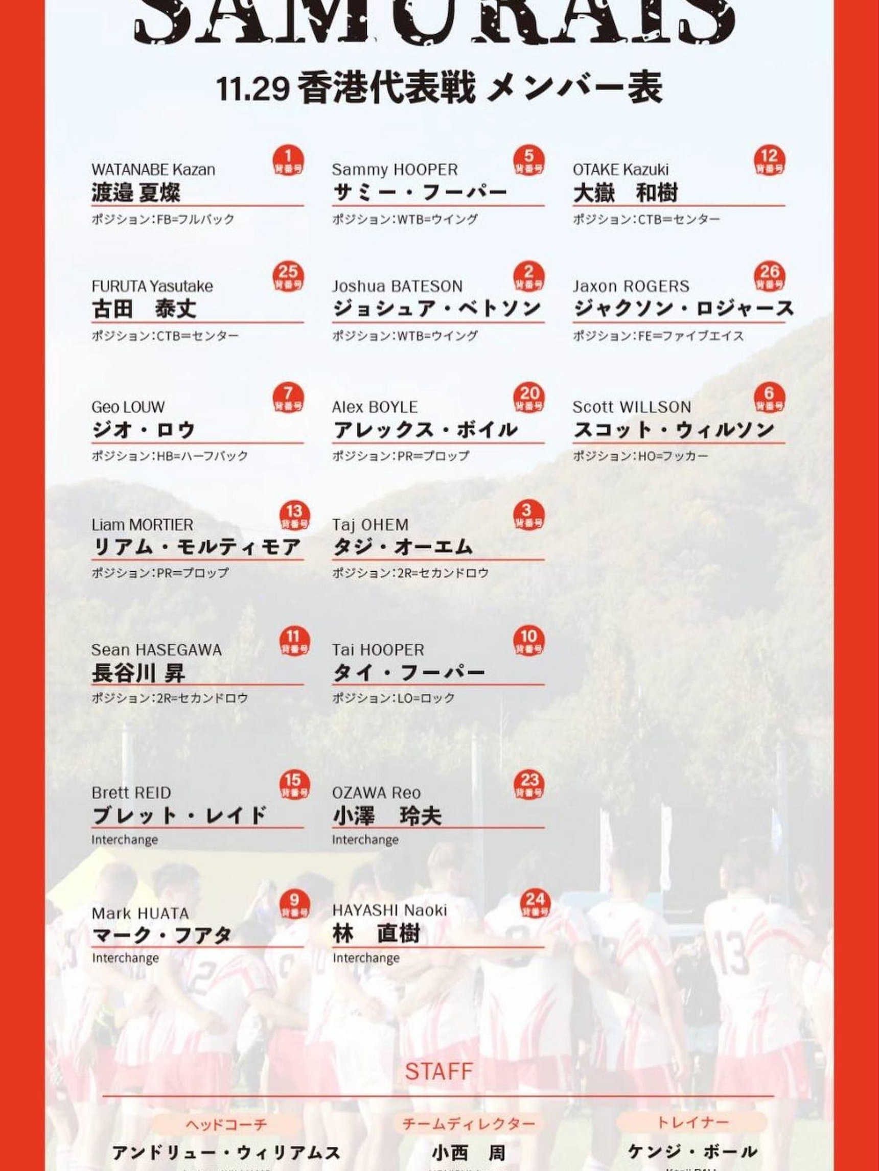 渡邉夏燦(元同志社・三菱重工相模原ダイナボアーズなど)や長谷川ショーン(元大東文化大)といった、ユニオン(15人制)ファンにも馴染みのある名前も並ぶ。