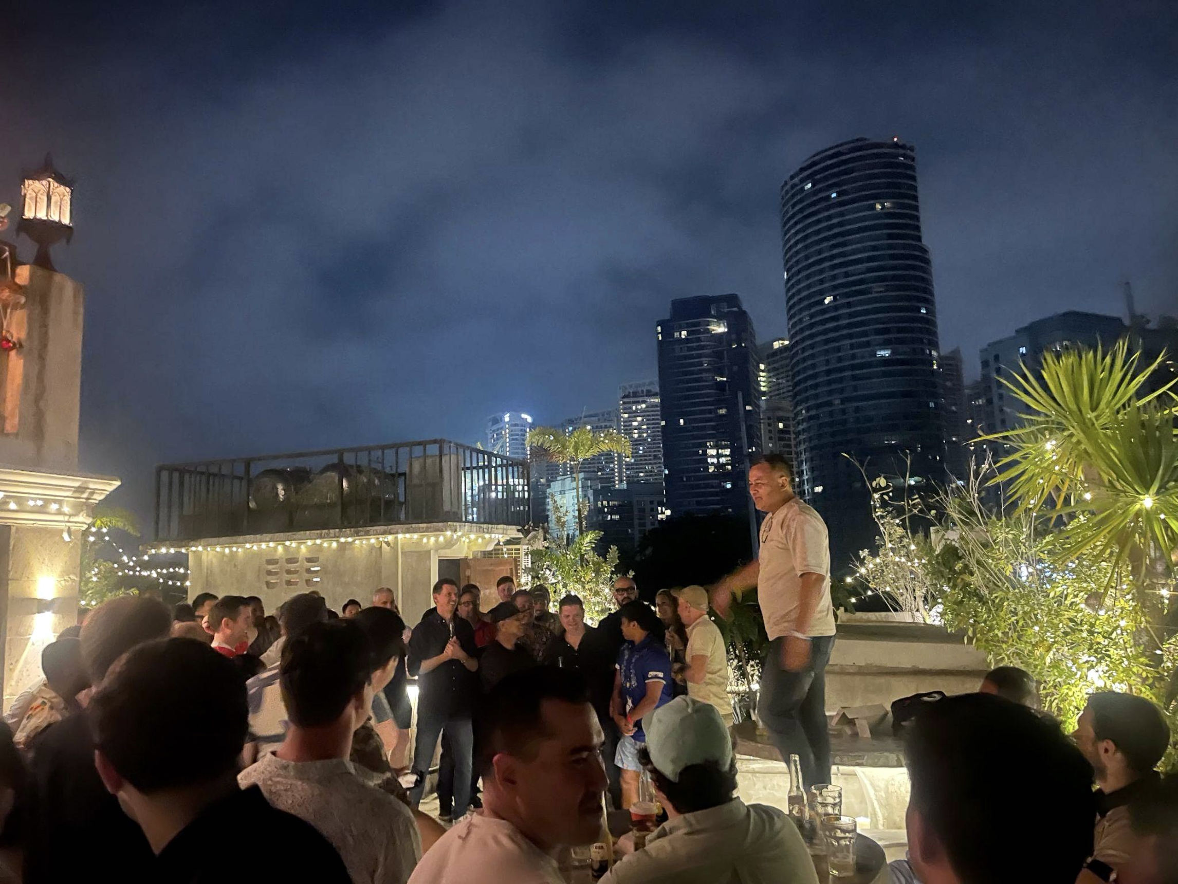試合後、ホテル近くのレストランでビールを飲みながら0次会。仕事の都合ですぐに帰国しなければならないメンバーとの別れを惜しむ。その後、大会主催のクロージングパーティーへ出席した。