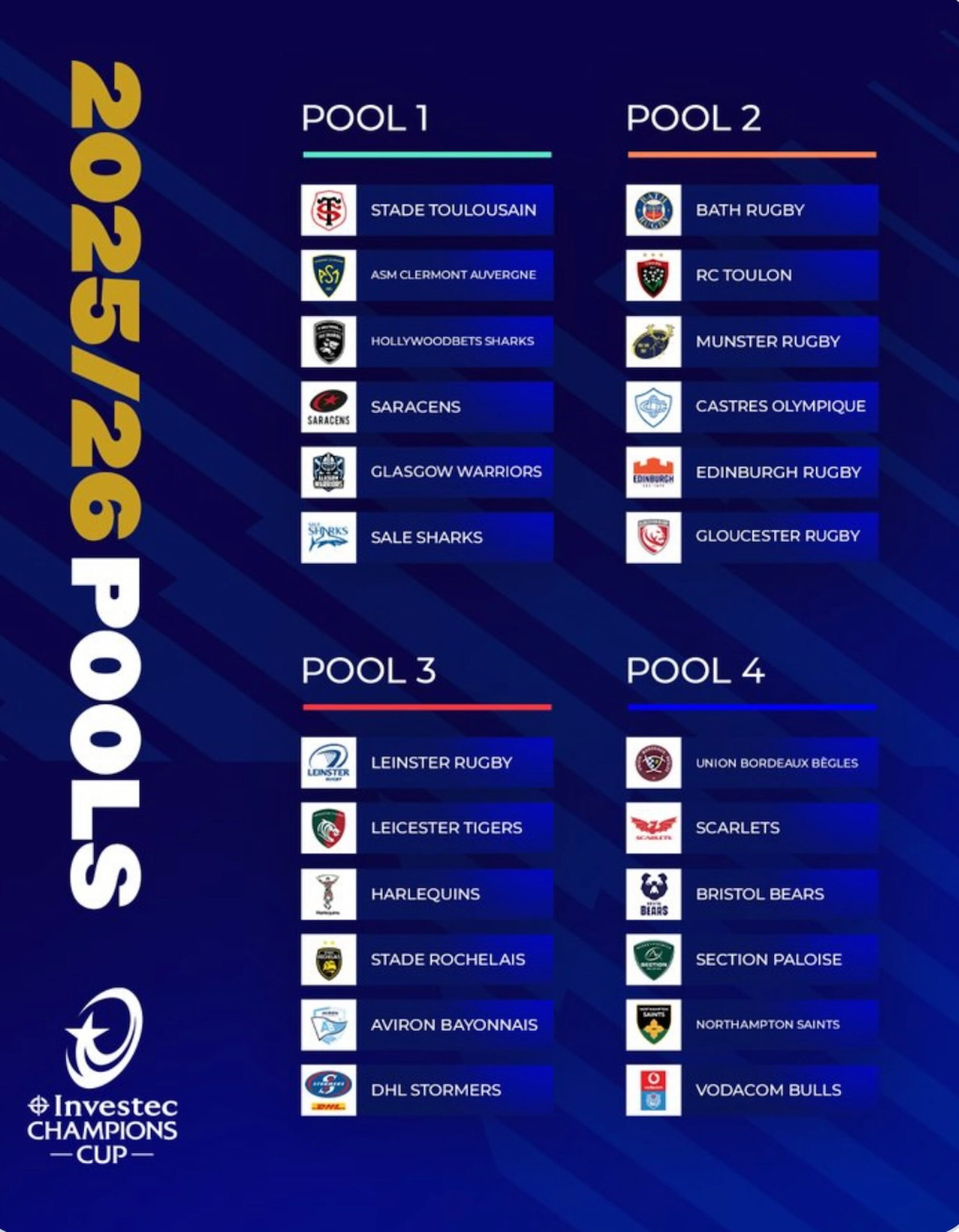 12月5日、今年度のインベステック・チャンピオンズカップが開幕した。この大会は、フランスのトップ14、イングランドのプレミアシップ、そしてユナイテッド・ラグビー・チャンピオンシップ(URC)の各リーグから、昨季の上位8クラブが参加する。URCには、アイルランド、スコットランド、ウェールズ、イタリア、南アフリカが参加している。