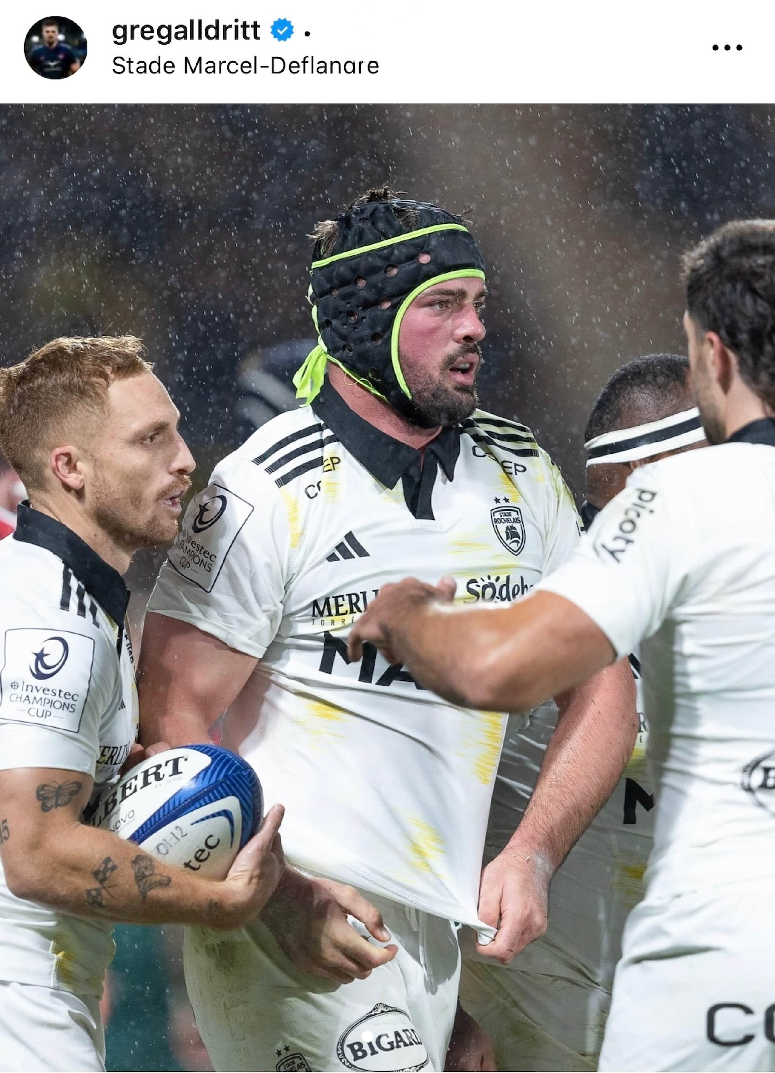 2022年、2023年とこの大会で優勝しているラ・ロシェルもタイトル奪回を目指している。トップ14では現在10位と低迷しているが、「チャンピオンズカップを全力で戦う」と宣言していたキャプテンのNO8グレゴリー・アルドリットは、さらに「前週、トップ14の試合でポーにモールで押され、FWで支配されて負けたから挽回したかった」、その思いも加わり、オスカー・ジェグーとレヴァニ・ボティアの両FLと共に、力強い突進とアグレッシブさでチームに勢いを与え続けた。