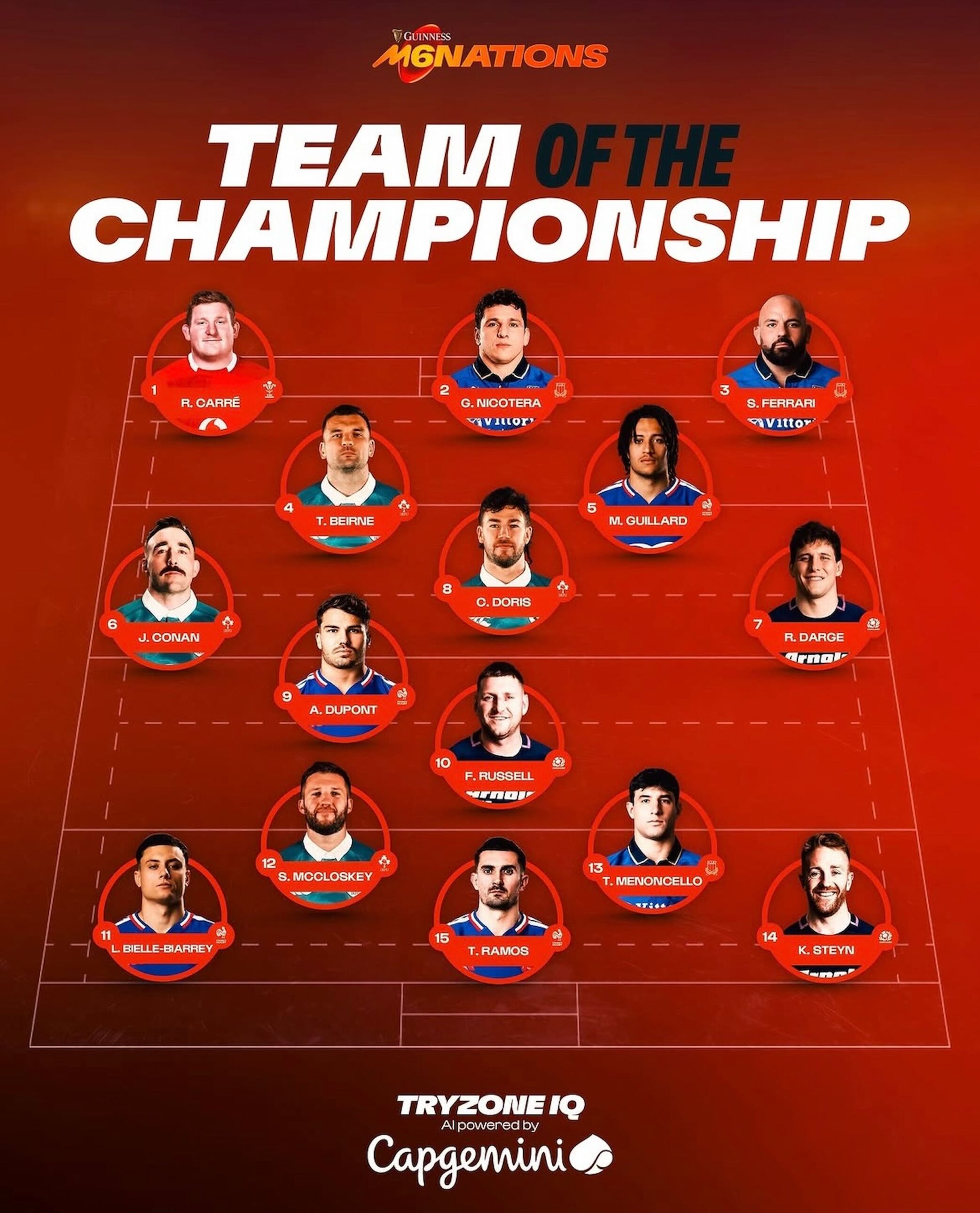 大会を総括するにあたり、ガルチエは5人のベストプレイヤーを挙げた。豊富な運動量で凄まじいパフォーマンスを見せた左PRジャン=バティスト・グロ。新たな星として輝いたFLオスカー・ジェグーとWTBテオ・アティソベ。そして、勝負どころで動じない強さを示したトマ・ラモス。
